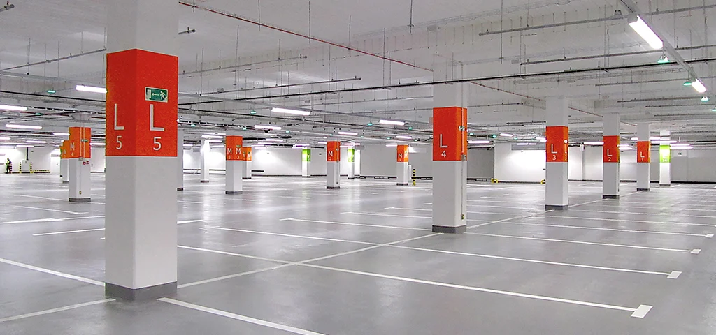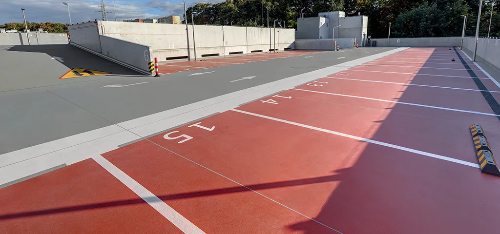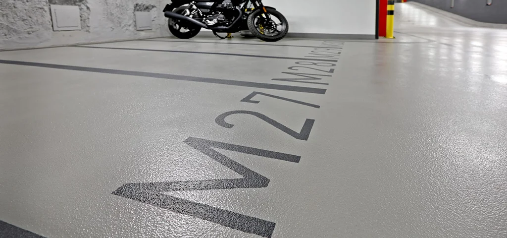 Високата якост на абразия, устойчивостта на хлорид, преодоляването на пукнатини в бетонните основи и ниските емисии на ЛОС гарантират отлично решение за защита на бетонните основи на подземните паркинги в модерни офис сгради, жилищни сгради и търговски центрове.