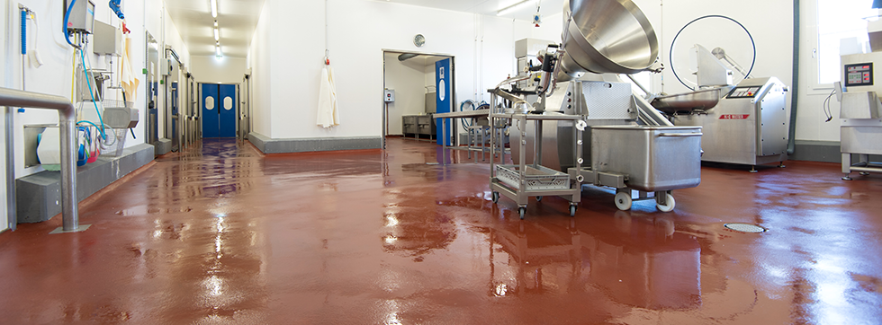 Böden in der Lebensmittelindustrie stellen spezielle Anforderungen an Eigenschaften und Belastbarkeit. Je nach Betrieb sind diese dauerhaft feucht und erfordern Rutschsicherheit, Hygiene, die Möglichkeit für einfache Reinigung sowie mechanische und chemische Belastbarkeit.