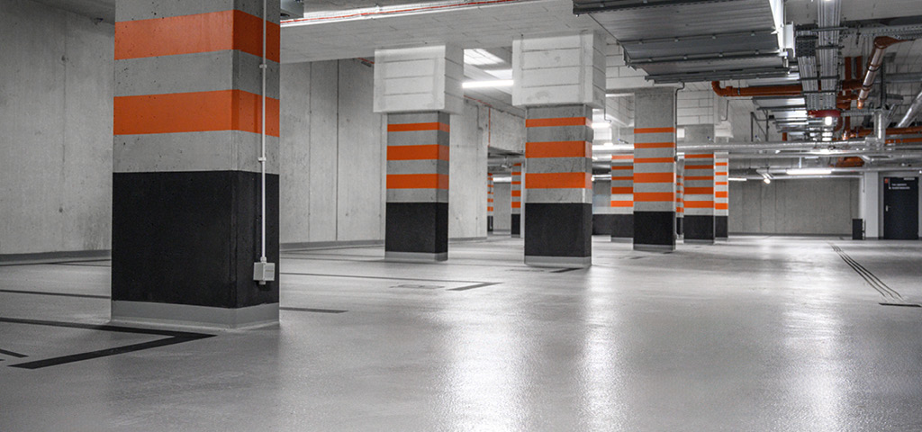 W garażach podziemnych, na powierzchni ok. 3 700 m2 zaaplikowano żywiczne posadzki parkingowe Deckshield marki Flowcrete. Te poliuretanowo-kwarcowe systemy posadzkowe zabezpieczają betonowe podłoże przed zniszczeniem pod wpływem ruchu pojazdów, wydłużając żywotność elementów konstrukcyjnych budynków, a przy tym korzystnie wpływają na estetykę parkingu.