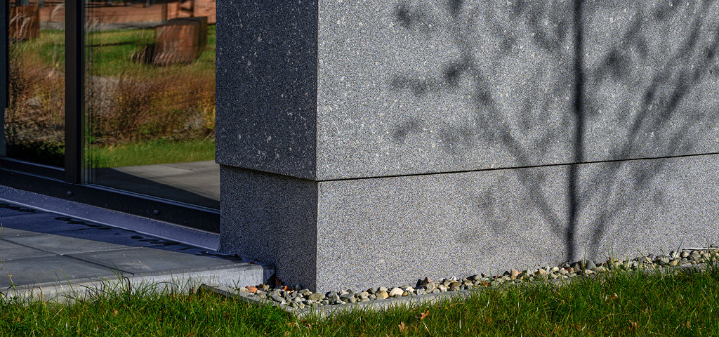 W warstwie wykończeniowej, na przeważającej powierzchni elewacji, zastosowano tynki Ameristone T w unikalnej kolorystyce stworzonej specjalnie dla tego projektu. Ta dekoracyjna wyprawa tynkarska stanowi oryginalną, autorską technologię marki Dryvit, nawiązującą wizualnie do granitu. Dodatkowo w inwestycji Osiedle Korczaka zastosowano jeszcze dwa inne rodzaje tynków Dryvit w starannie dobranych odcieniach, uzupełniających elegancką kreację elewacji. Na cokołach położono wyprawę tynkarską Stone Mist, pozwalającą uzyskać efekt naturalnego kamienia, a na kominach – tynk Hybrid o wysokiej elastyczności i wytrzymałości na spękania, zachowujący trwałość barwy w czasie.