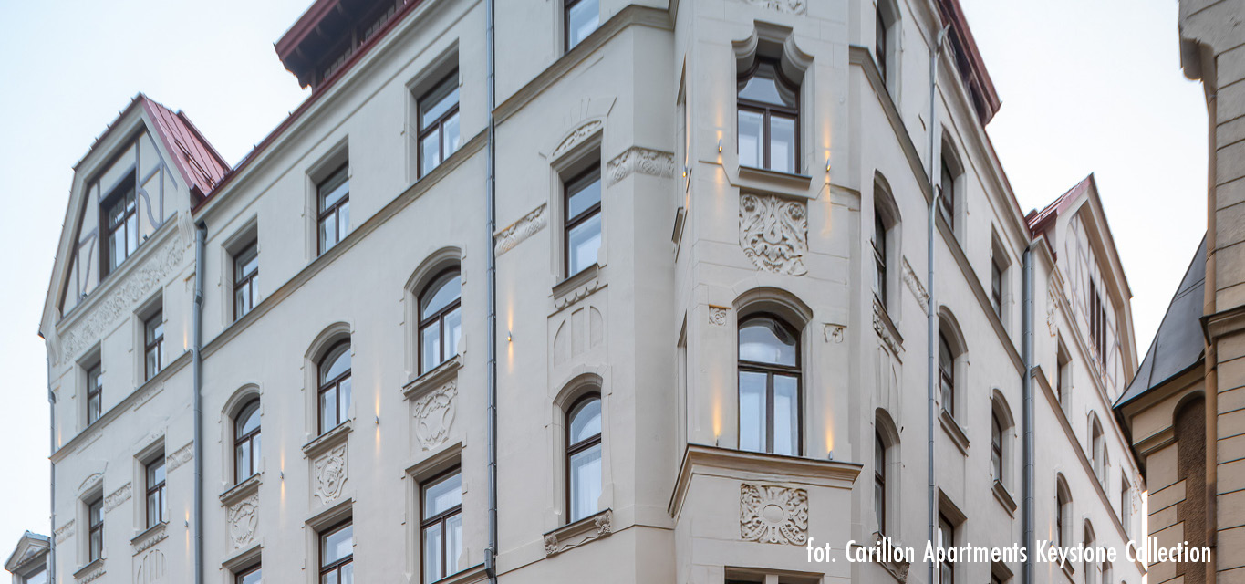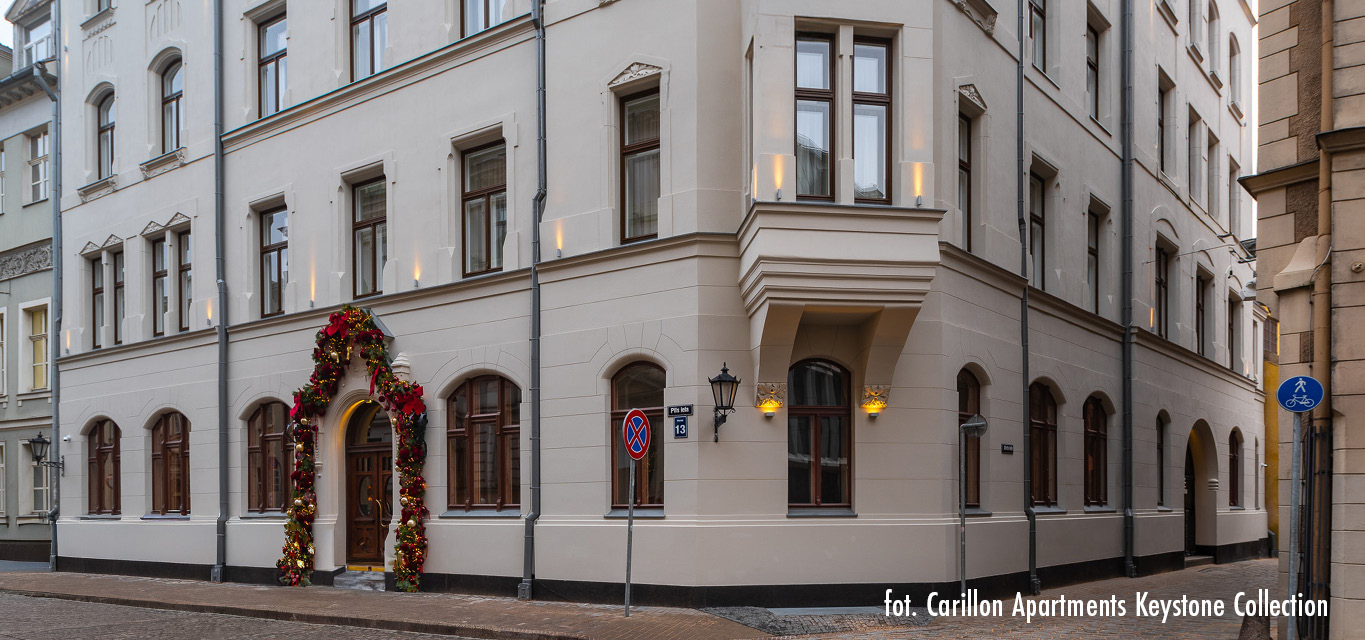 Aparthotel Carillon, należący do sieci Keystone Collection, w częściach wspólnych oraz w 61 stylowo urządzonych apartamentach, łączy ponadczasową, wyrafinowaną elegancję i nowoczesne udogodnienia, aby zapewnić gościom maksymalny komfort. Obiekt został stworzony z myślą o osobach podróżujących służbowo, rodzinach z dziećmi, a także planujących dłuższy pobyt. Do jego największych zalet należą pięknie odrestaurowane wnętrza i sąsiedztwo urokliwej, historycznej zabudowy Starego Miasta w Rydze, wpisanej na Listę Światowego Dziedzictwa UNESCO, z takimi zabytkami, jak Dom Bractwa Czarnogłowych czy kościół św. Piotra.